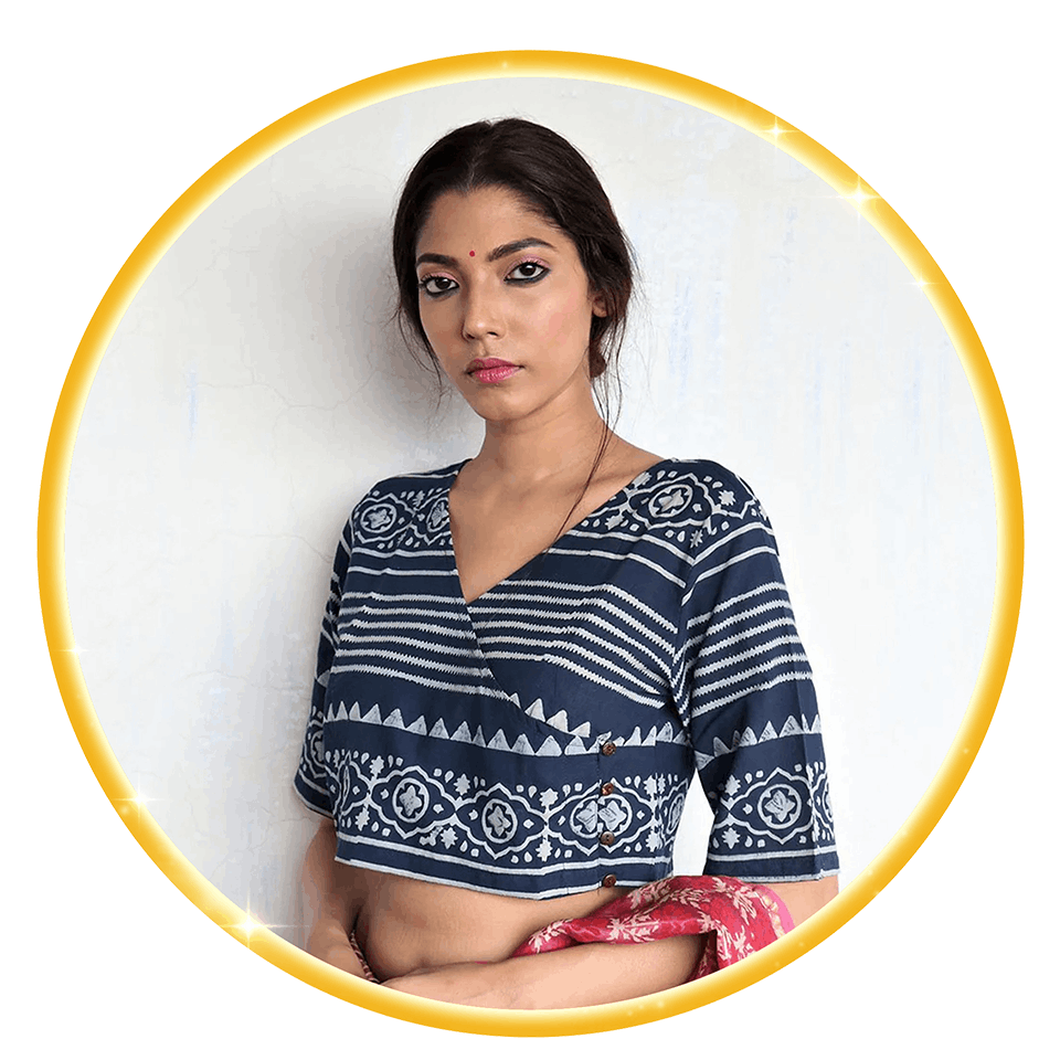 Rani Block Printed Crop Top Mashru Silk Blouse Rani Block Printed Crop Top Mashru Silk Blouse