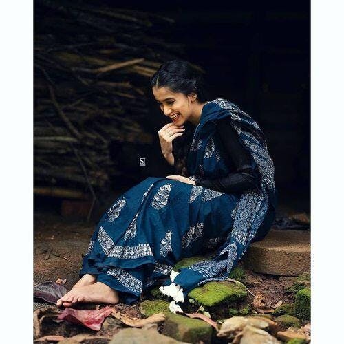 Listen to the bird chirpings in our pure cotton, blockprinted saree.