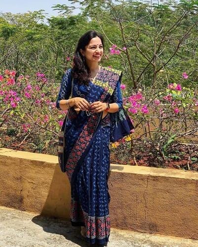 Blue Blockprinted Cotton Mul Saree