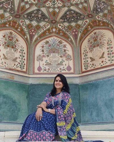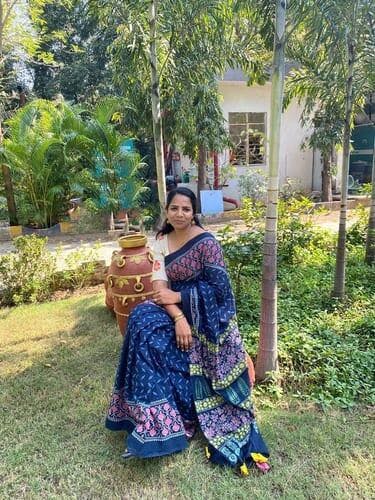 Sprinkle the world with love, colours and giggles while wrapping yourself in this pure cotton, blockprinted saree.