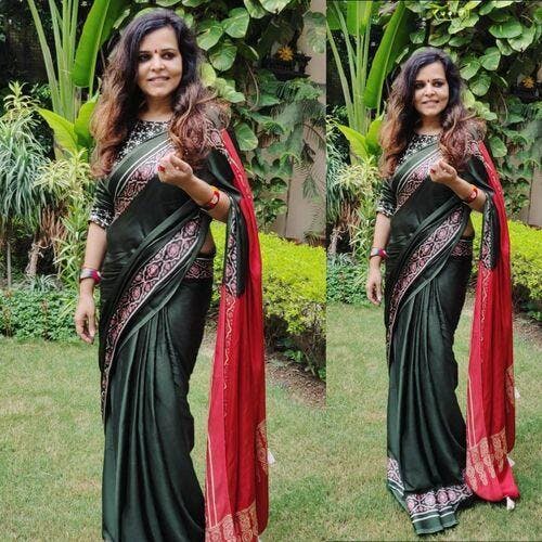 Green-Red Blockprinted Modal Silk Saree