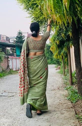 The Aaina Green Block printed Cotton Saree is a reflection of timeless beauty, representing the allure of cotton sarees. This exceptional cotton saree is adorned with intricate block prints, each telling a story of tradition and artistry. Draping yourself in this cotton saree feels like adorning yourself in a tapestry of comfort, thanks to the soft and breathable cotton mul mul fabric. Whether you're dressing up for a special event or a casual gathering, the Aaina block printed Cotton Saree effortlessly weaves the threads of classic cotton sarees with a touch of modern sophistication, ensuring you radiate both elegance and comfort with every graceful fold.